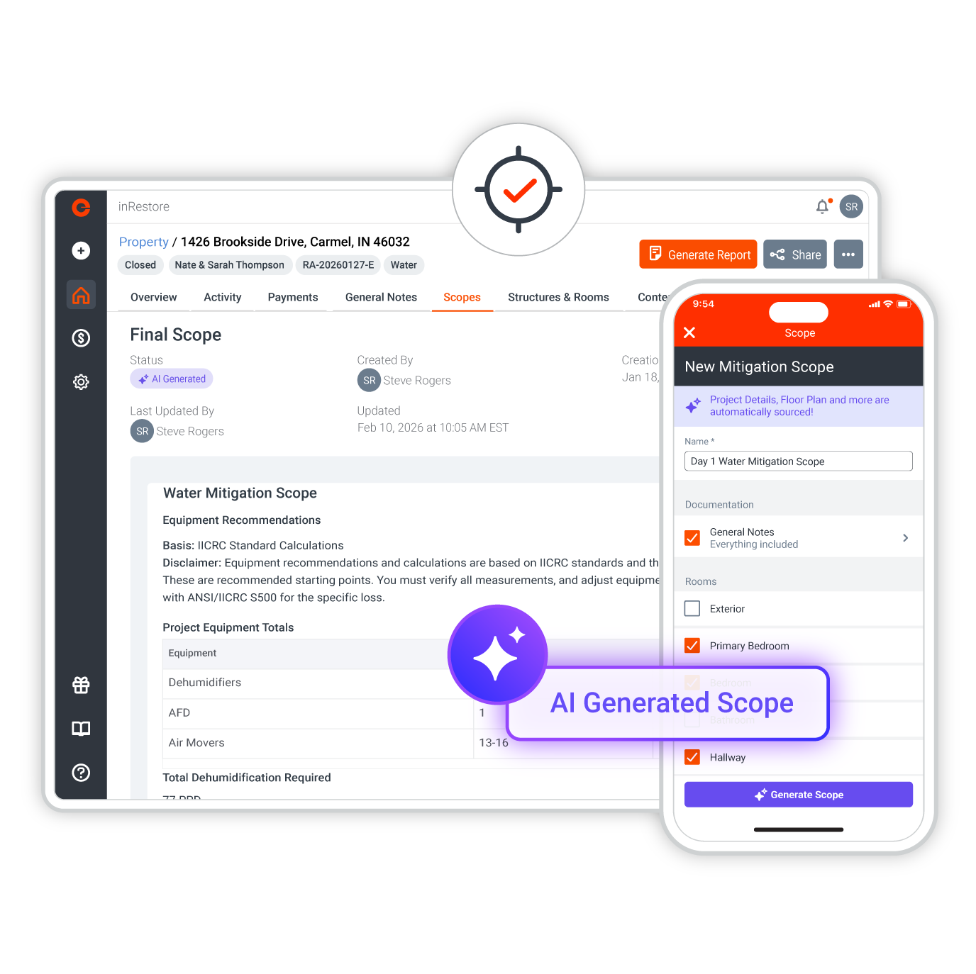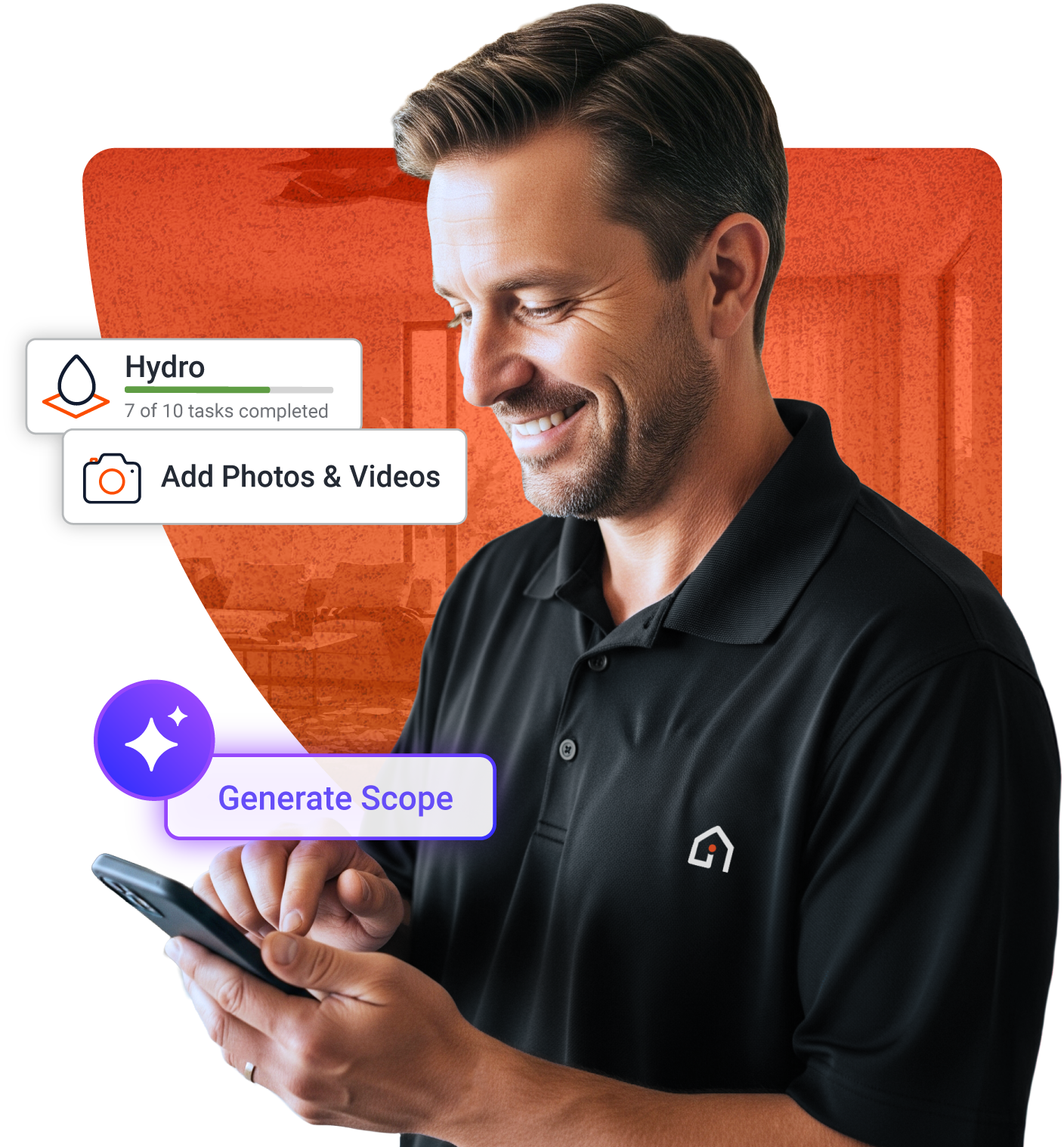 Capture every detail in the field. Turn that job data into a scope automatically—with AI✦ that's built for restoration.