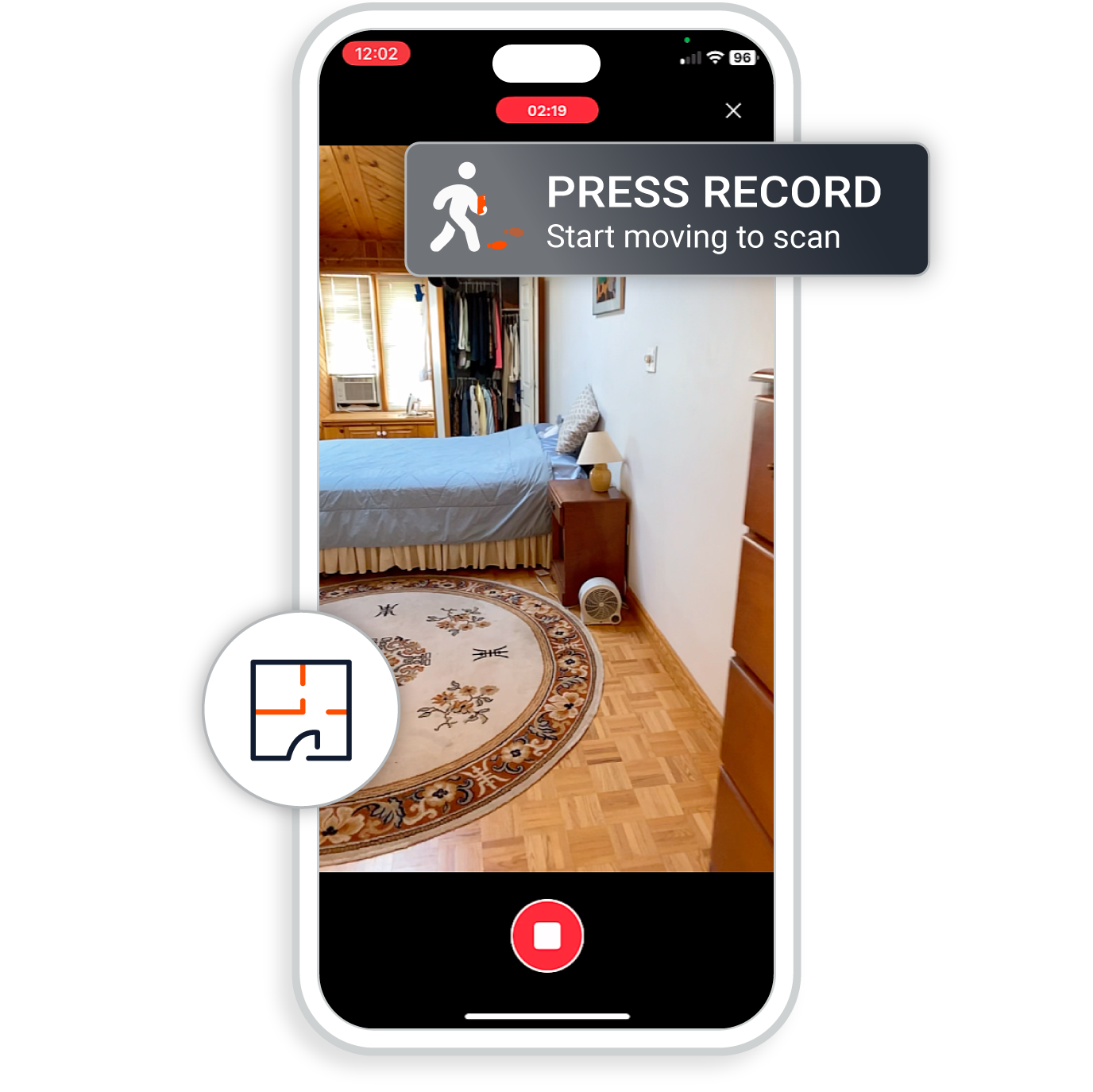 Point, walk, record. Capture a comprehensive property scan in as little as 5 minutes using just a smartphone. You don’t have to stitch rooms together or stop to set up a tripod every few feet. Just walk the property and we take care of the rest.