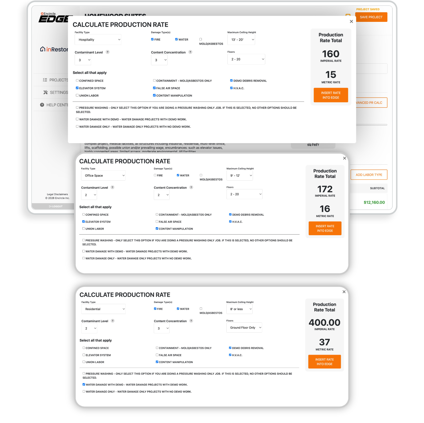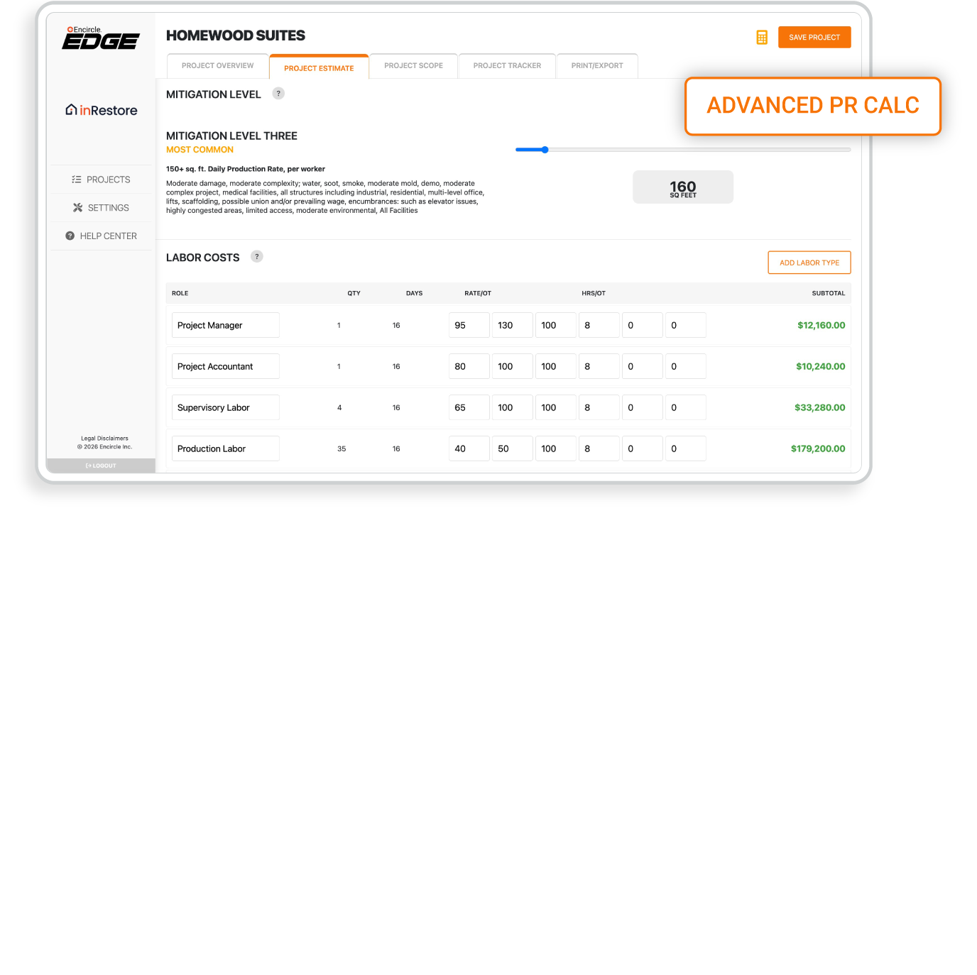 Encircle Edge turns job details like square footage, duration, and complexity into fast, defensible budget estimates. It calculates labor, materials, and equipment using over 35 years of real production data.