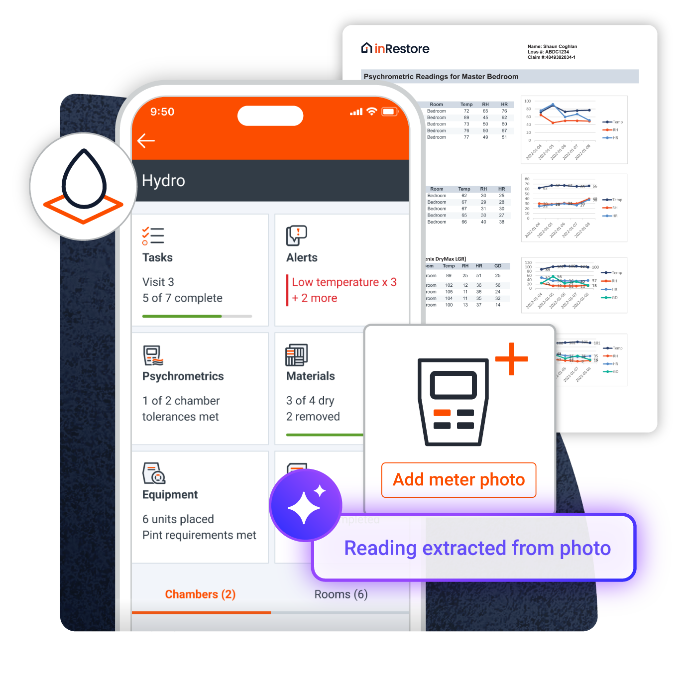Mastery without memorization. Drying science is complex, but documenting it shouldn’t be. Hydro acts as a guardrail, prompting techs for the right readings at the right time. They don’t need to be S500 experts to capture expert-level data